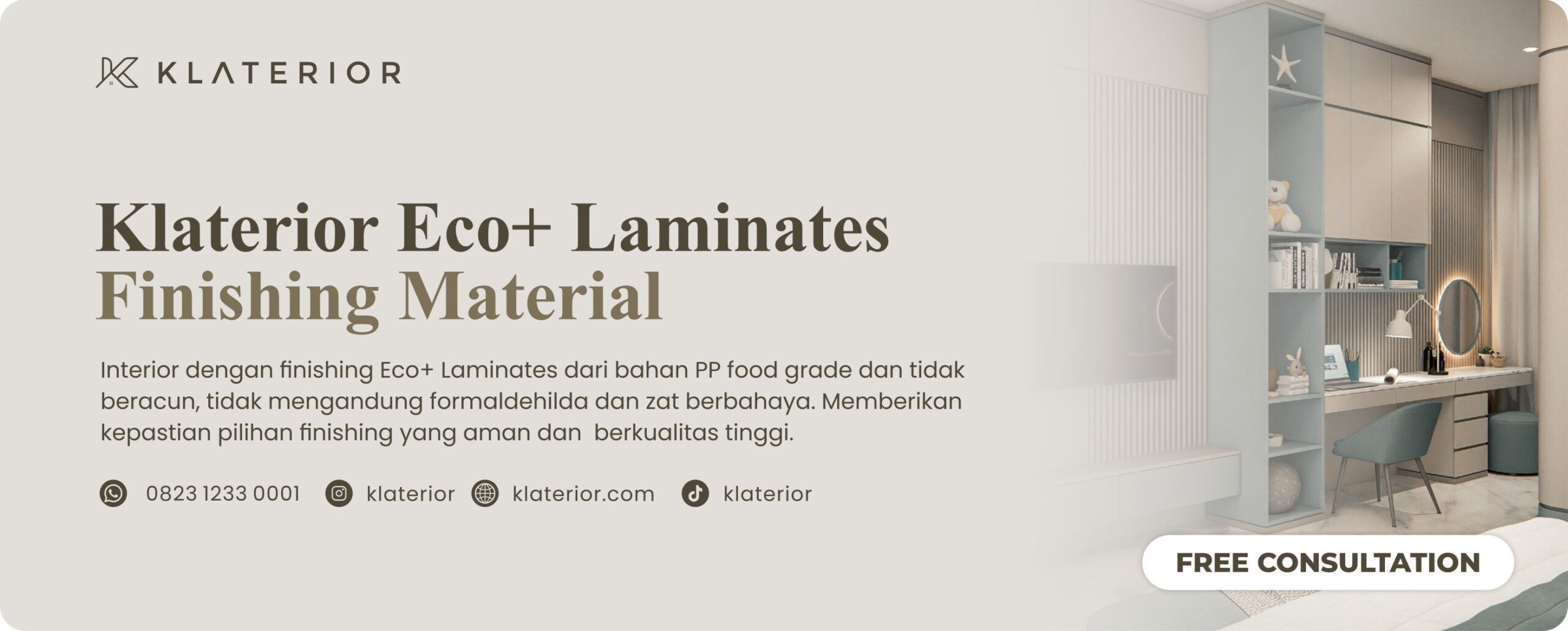 Wujudkan ruang impian Anda yang tak hanya indah, tetapi juga bermakna bersama Klaterior. Karena desain yang baik adalah tentang menciptakan memori dan pengalaman hidup yang lebih baik.